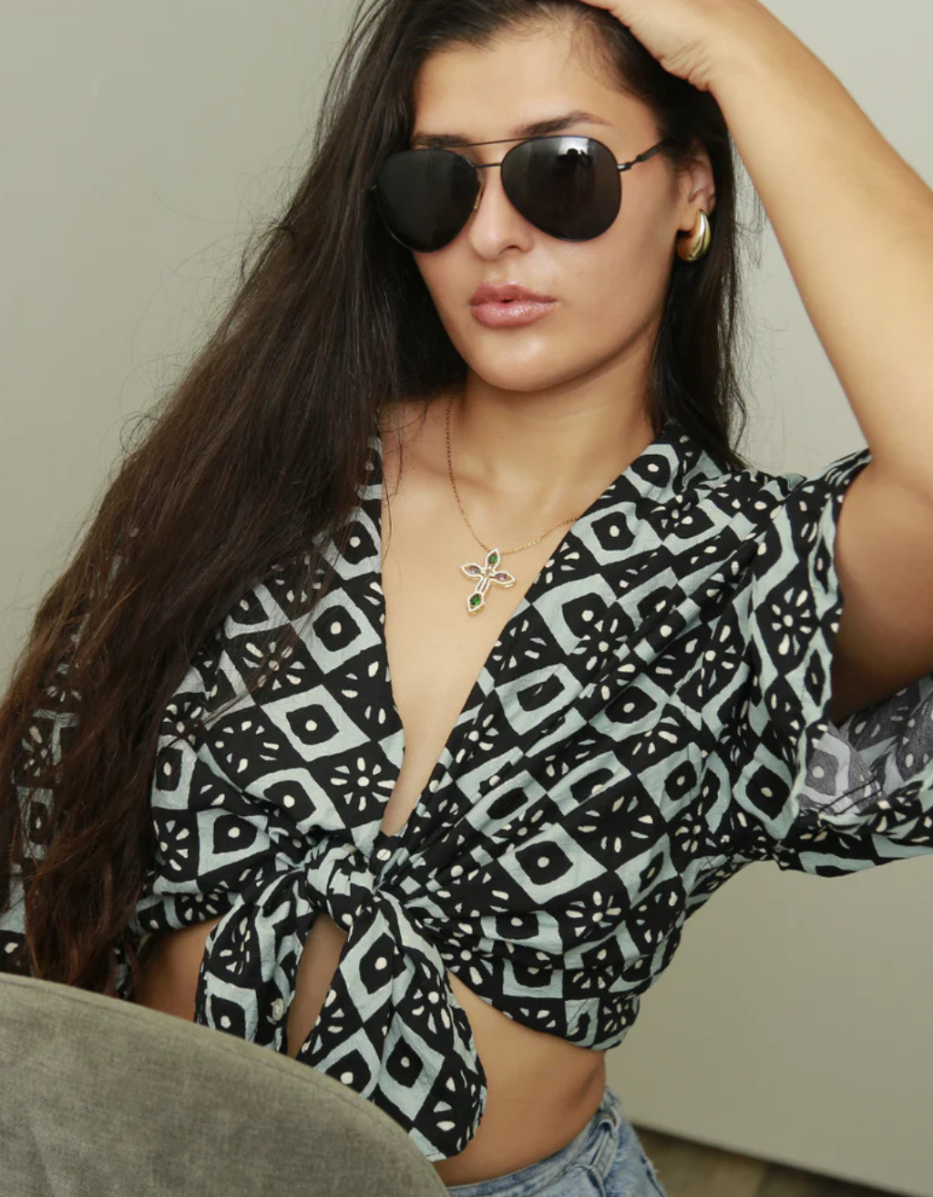 Genuine Multi-colored Gemstone Cross Pendant w/ Gold Plated Chain.
